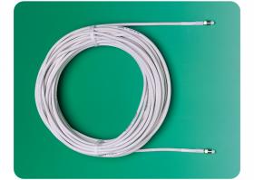 - Weißes RG 58 Koaxialkabel mit beidseitig montierten FME-Anschlüssen.