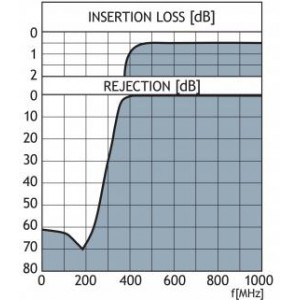 - Passbandbreite 380-1000 MHz.