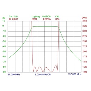 - Allows the whole 118 – 137 MHz band to pass with low loss.