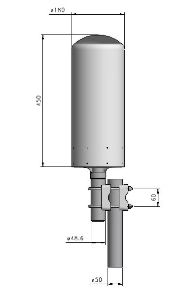 - Circularly polarized quadrifilar helix antenna for fixed installation.