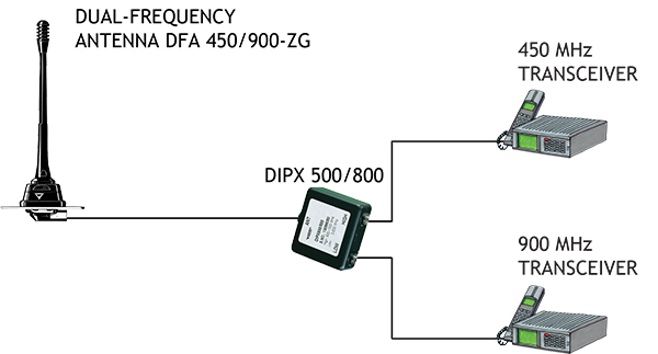 - operate a dual-frequency transceiver (450 and 900 MHz) on one antenna (diplexer not required).