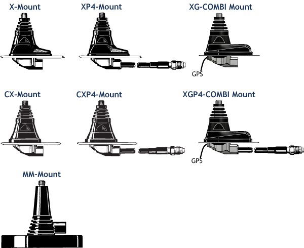 • Models available with X-mount (oblong), CX-mount (circular), XG-Combi mount (oblong) with GPS and MM-mount (magnetic).